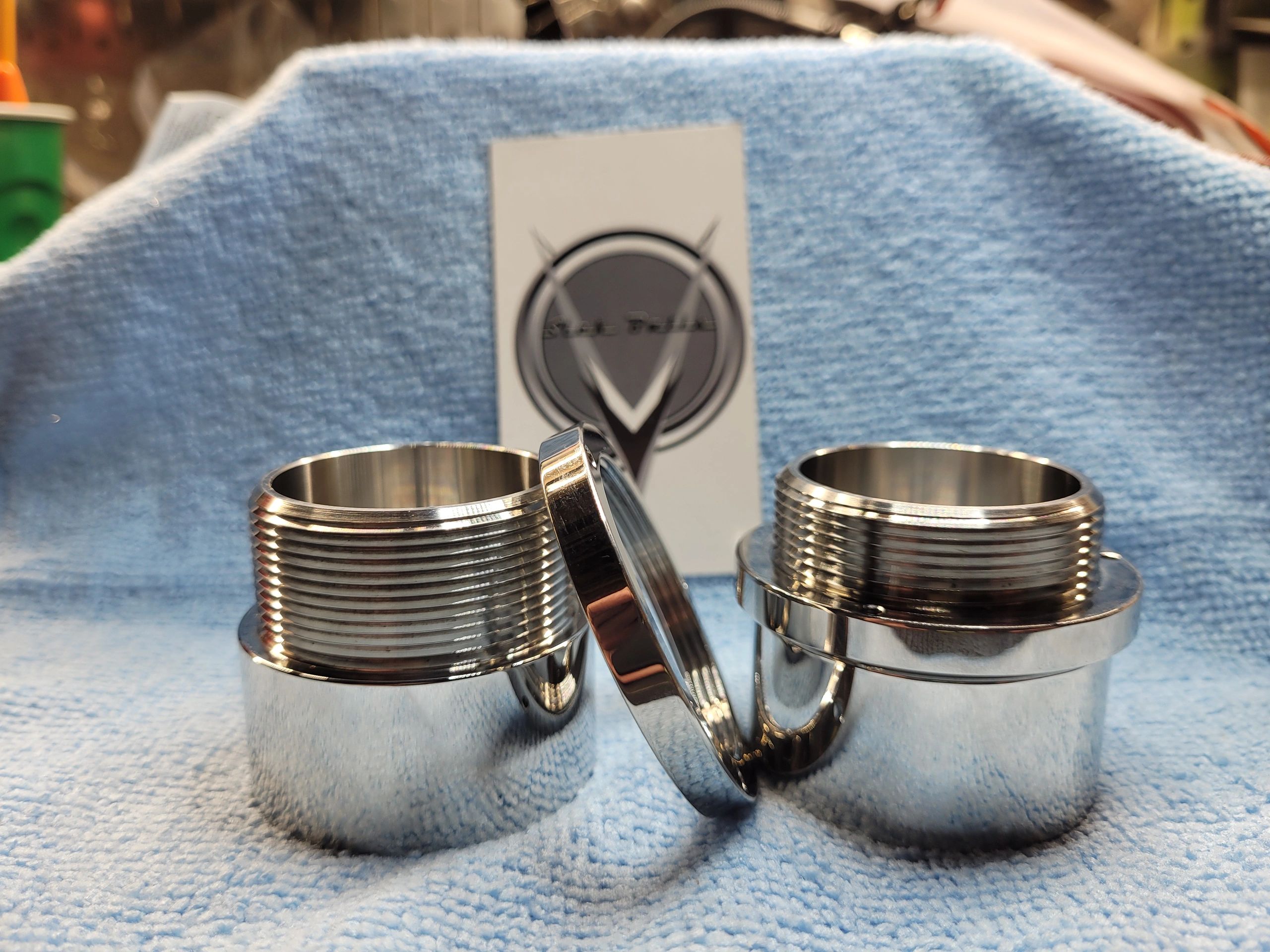 High Polished Replaces OEM Direct Replacement 316 Stainless Steel Front Axle Bearing Collars with USA Bearings Installed... SOLD in PAIRS. NOTE: SHIPPING RATE IS USA ONLY...OVERSEAS WILL BE MORE